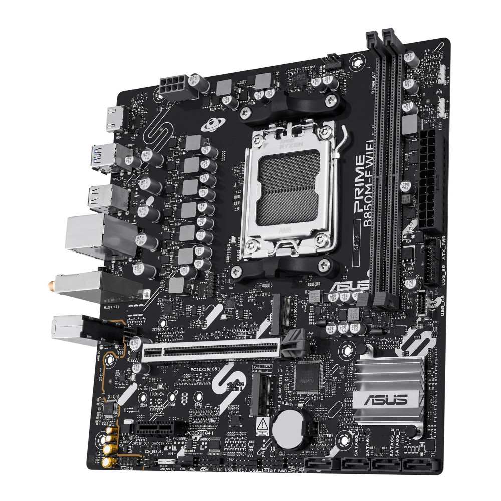 The ASUS PRIME B850M-F is a feature-rich Micro-ATX motherboard designed for builders seeking dependable performance and excellent value. Built on the AMD B850 chipset, this board supports the latest AMD Ryzen processors, making it ideal for gaming rigs, productivity workstations, and everyday computing systems. With ASUS’s renowned build quality and thoughtful feature set, the PRIME B850M-F delivers the perfect foundation for your next PC build.