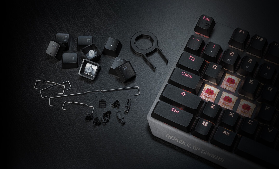 Designed to complement ASUS Republic of Gamers peripherals, these keycaps feature the distinctive ROG styling that enhances your gaming setup. The professional appearance suits both RGB and non-RGB mechanical keyboards, allowing you to maintain a cohesive gaming aesthetic.