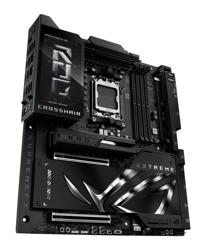 The ROG Crosshair X870E Extreme is the flagship AMD Ryzen™ 9000 series motherboard, designed for the most discerning users. It provides the ultimate foundation for AM5 CPUs, DDR5 memory, and PCIe® 5.0 components to ensure maximum performance and future-readiness. Its comprehensive connectivity includes USB4®, and the integrated 5-inch LCD offers a unique way to monitor system performance or add a touch of personalized style.