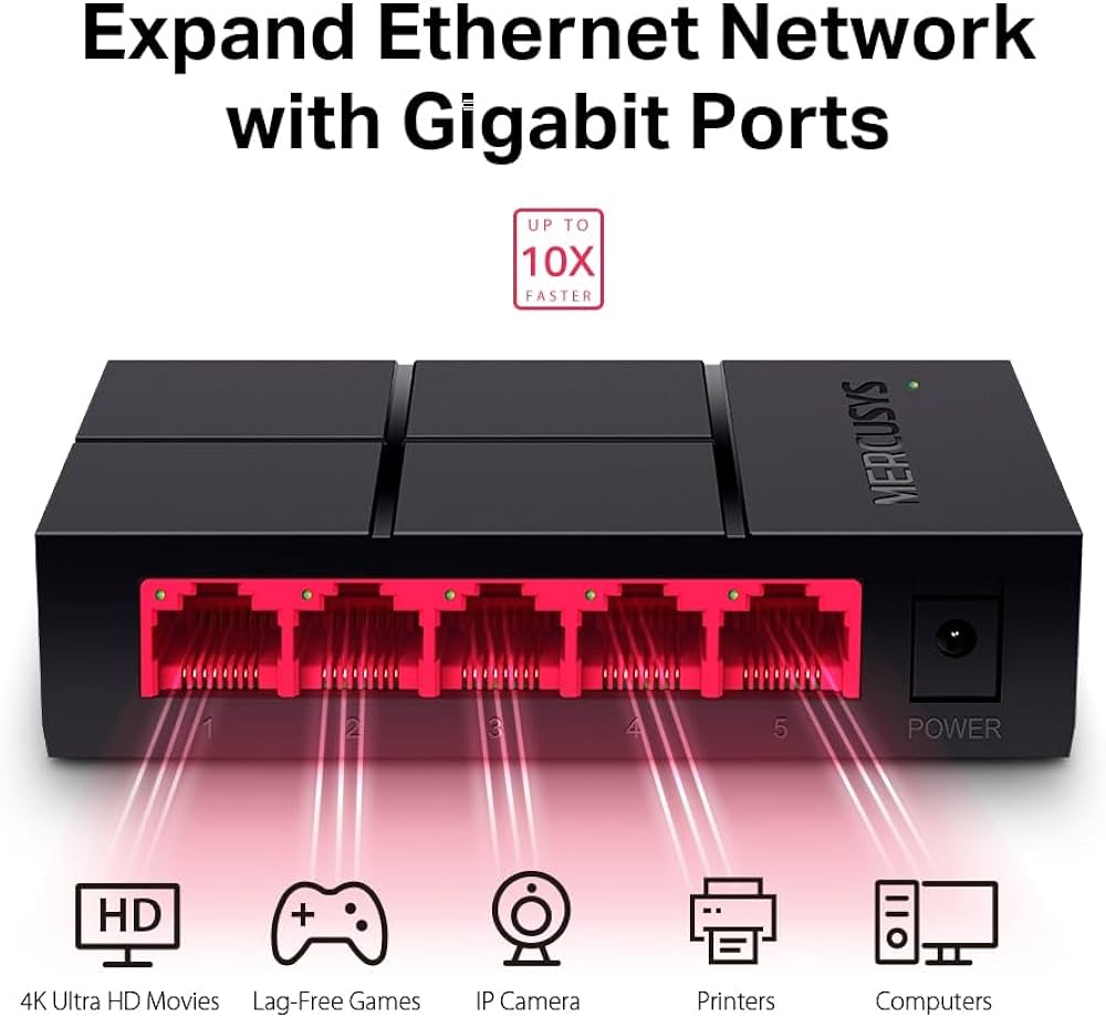 Experience data transfer rates up to 1000Mbps on all five ports, providing ten times the speed of standard Fast Ethernet switches. Perfect for bandwidth-intensive tasks like 4K streaming, online gaming, and large file transfers across your network.